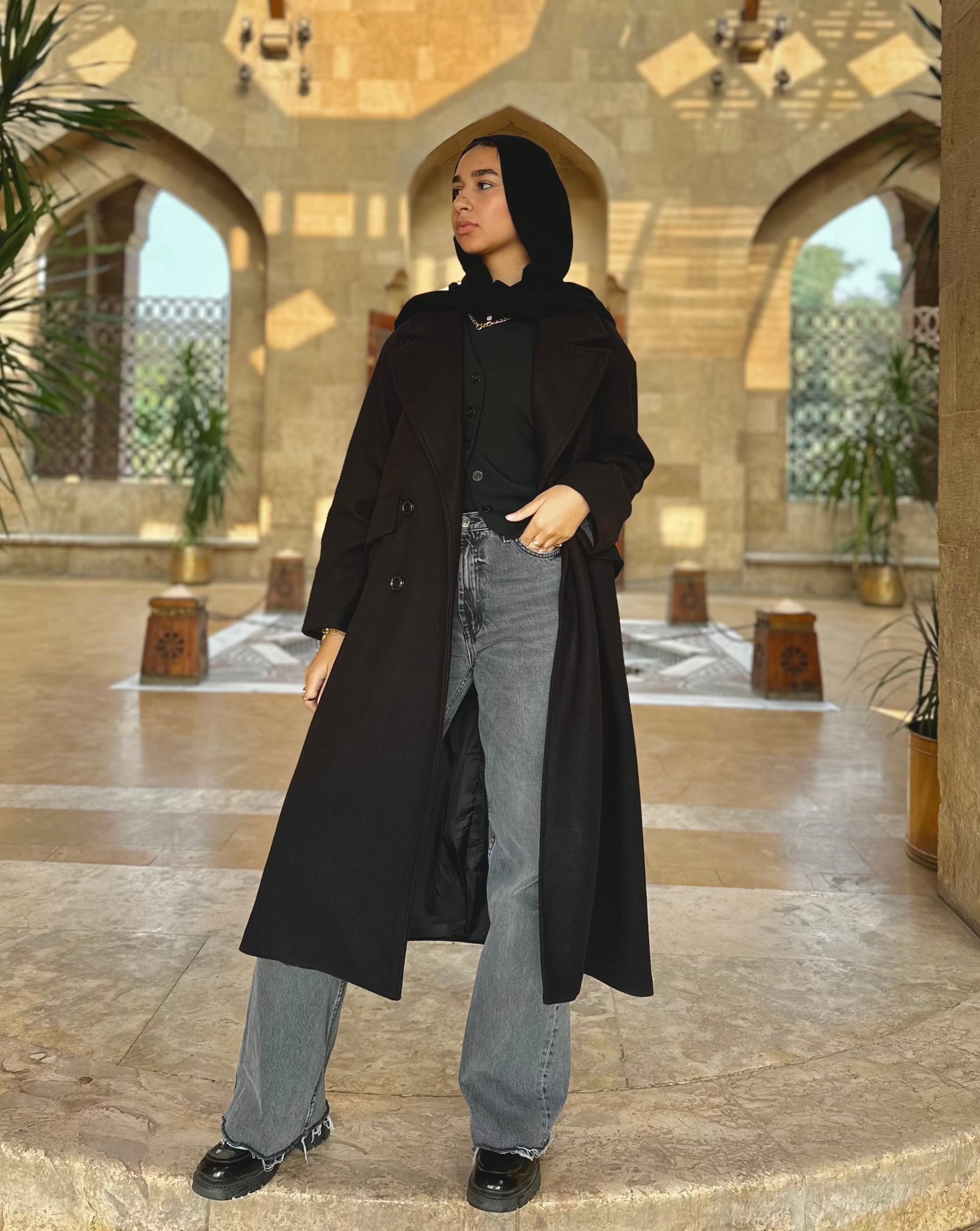 A timeless piece you'll have for years to come , this coat emphasizes sleek ling with its long length and tailor collar , making it the perfect sophisticated layer