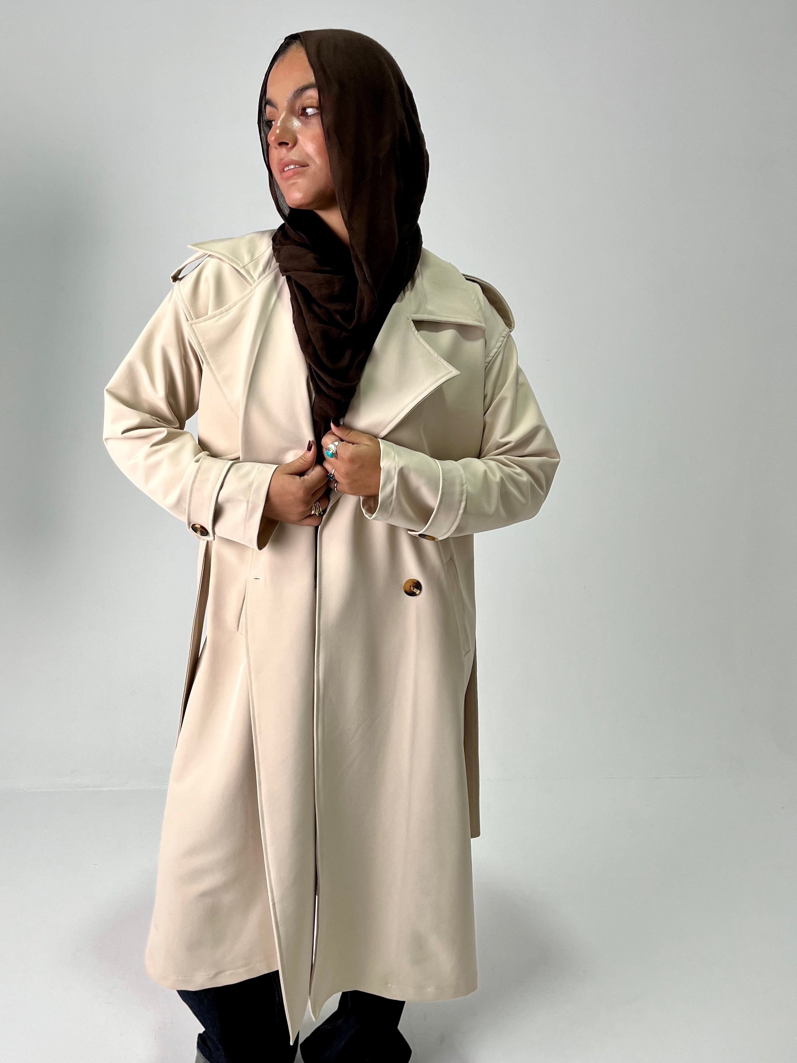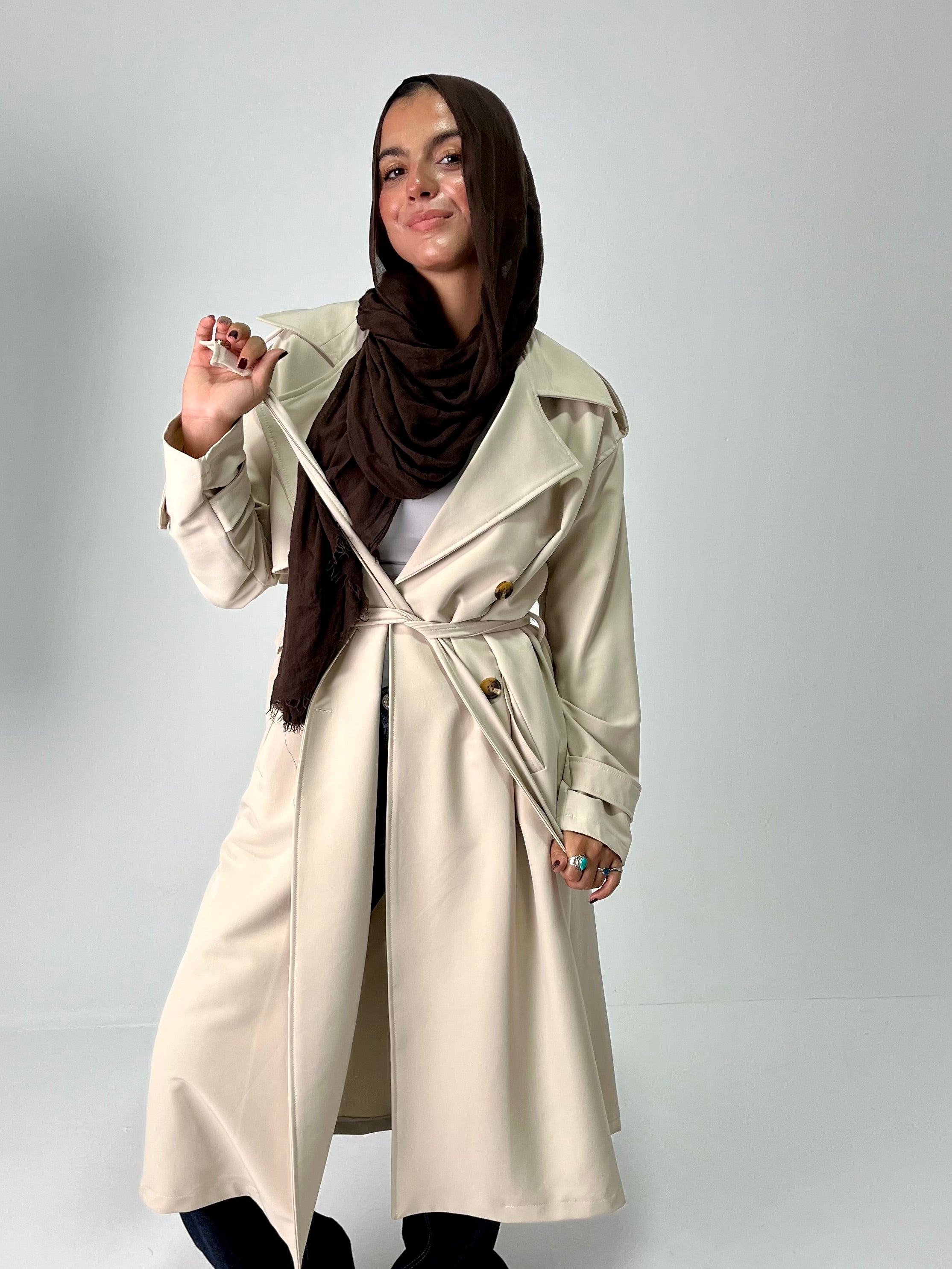 Elevate your wardrobe with this timeless Classic Beige Trench Coat, a must-have piece for transitional seasons. Made...